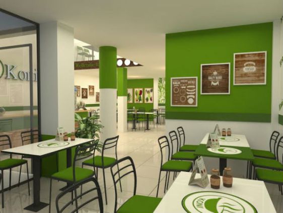 Màu xanh lá cây khiến chúng ta cảm thấy thoải mái, nó có tác dụng giúp tâm lý của thực khách ổn định, vững vàng hơn. Màu xanh lá cây còn có tác dụng giảm áp lực cho mắt, cải thiện sự vận động của các cơ bắp. Màu xanh lá cây tự nhiên còn có tác dụng điều chỉnh tâm trạng, giảm bớt mệt mỏi. Màu sắc này được lấy từ ý tưởng thiết kế nhà hàng sân vườn với mục tiêu tạo không gian xanh, thoáng mát.